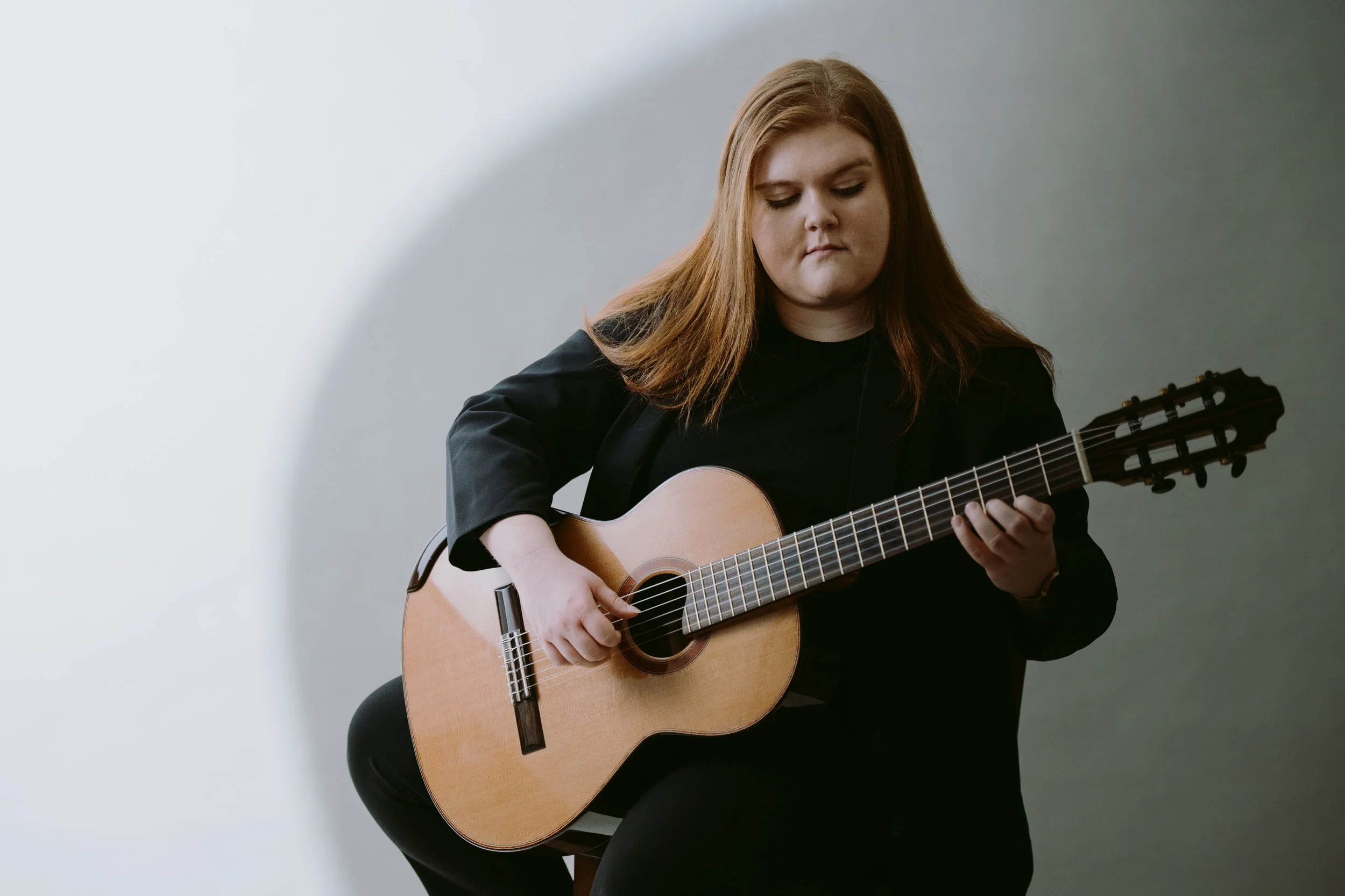 Madeline Hall is a Canadian guitarist, composer, and improviser whose work spans classical, jazz, metal, and interdisciplinary performance. Named to CBC’s “30 under 30” list, she is recognized for her powerful artistry and for drawing on her multi‑genre background to connect with audiences and showcase the classical guitar’s ability to act a dramatic, expressive tool across all artistic contexts. Madeline has performed at venues such as Zankel Hall, the Aspen Music Festival and School, Music Toronto, and the Pierneef Theatre in South Africa. She has appeared as a soloist with several orchestras and performed on Jazz FM.91’s Jazzology.